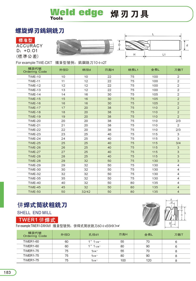 1. 螺旋焊刃立銑刀183