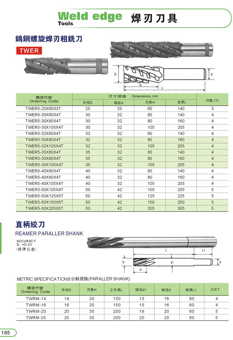 5. 焊刃螺旋鉸刀185