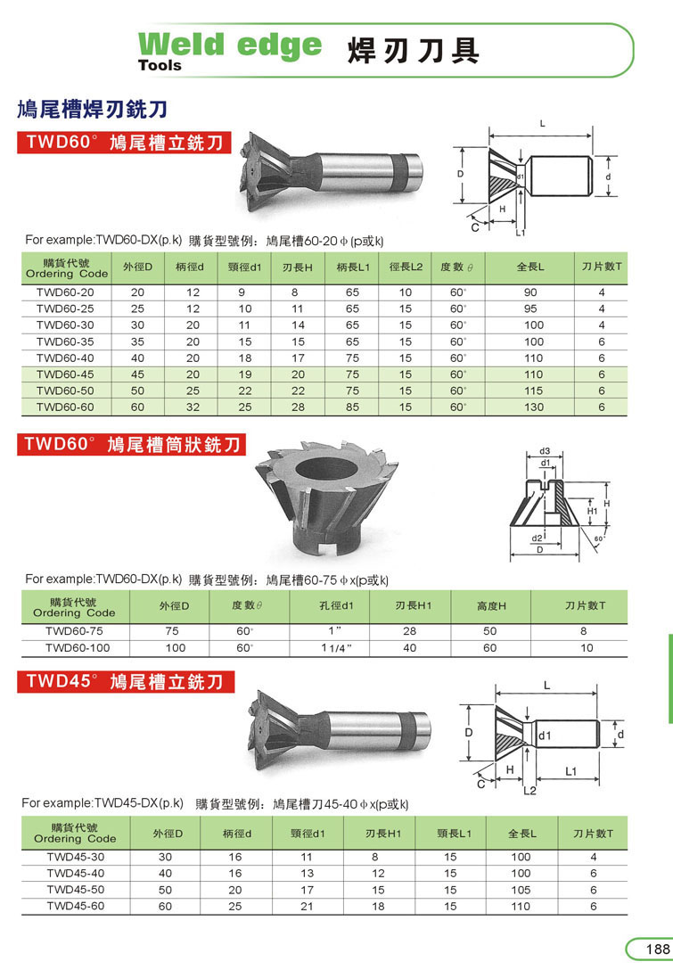 7. 燕尾槽焊刃銑刀188-1
