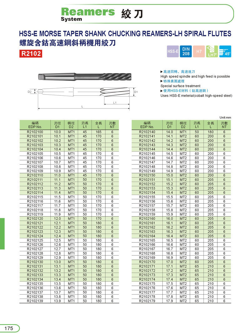 5. CARBIDE鎢鋼螺旋機用鉸刀179