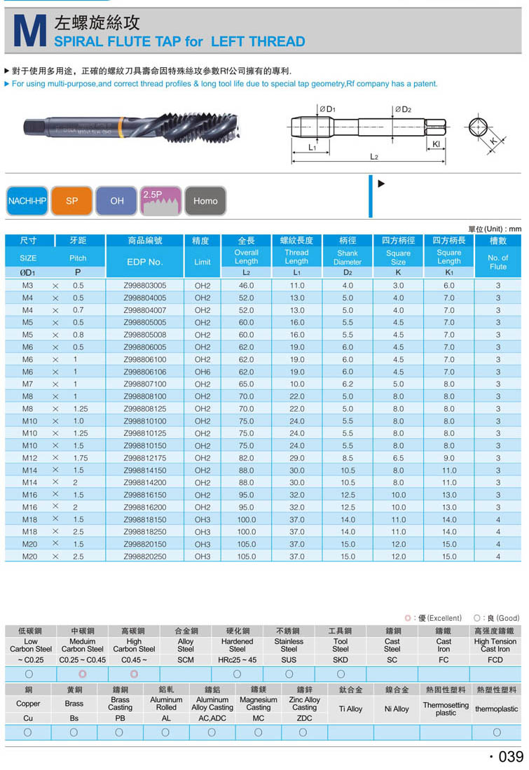 公制左螺旋絲攻039