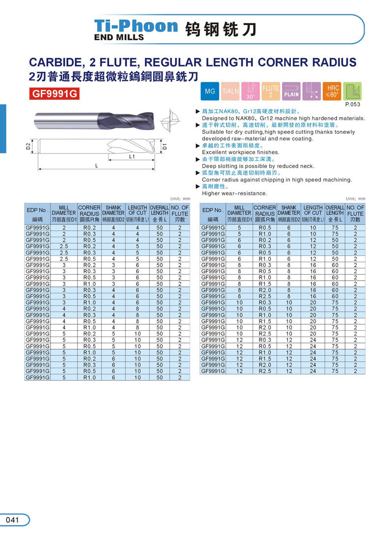 7. 2刃超微粒圓鼻鎢鋼立銑刀041