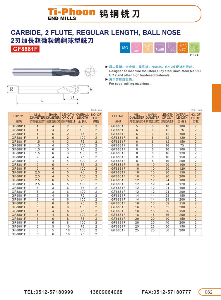 6. 2刃加長球型超微粒鎢鋼立銑刀062